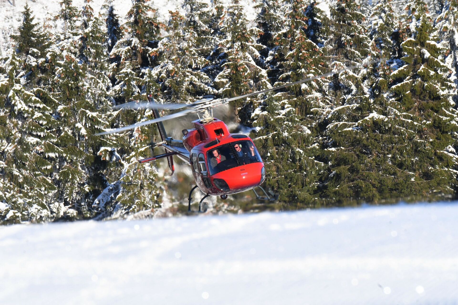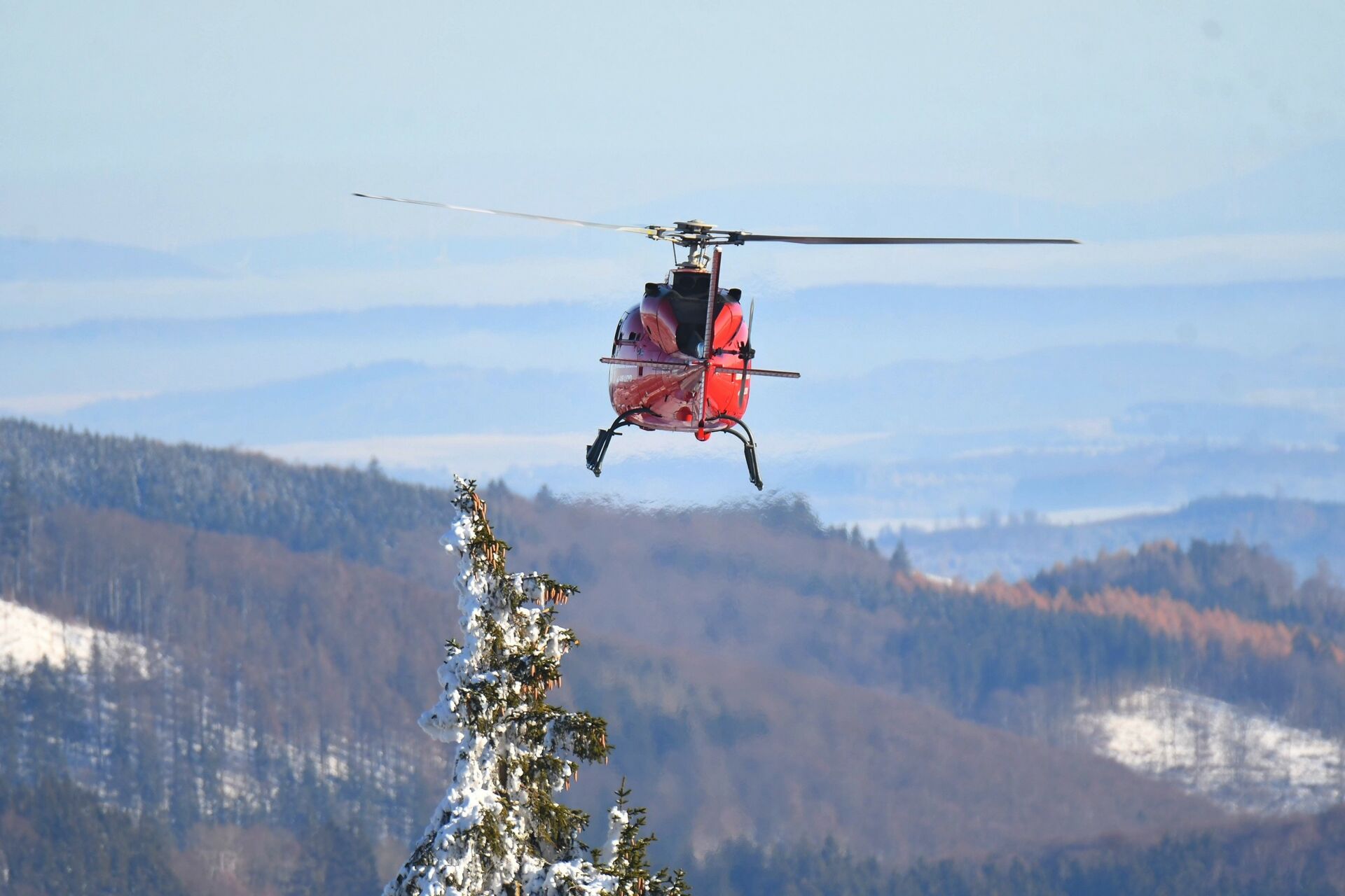 Der Hubschrauber AS 355 von AIR LLOYD wurde zum verblasen der Schneelast auf den Bäumen der Skipisten in Winterberg eingesetzt.